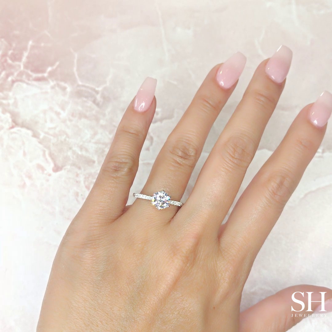 Solitaire engagement rings are a classic, simple design. Featuring a single diamond in the centre and showcasing the stone's true beauty, Solitaire engagement rings are designed for daily use and require little maintenance.