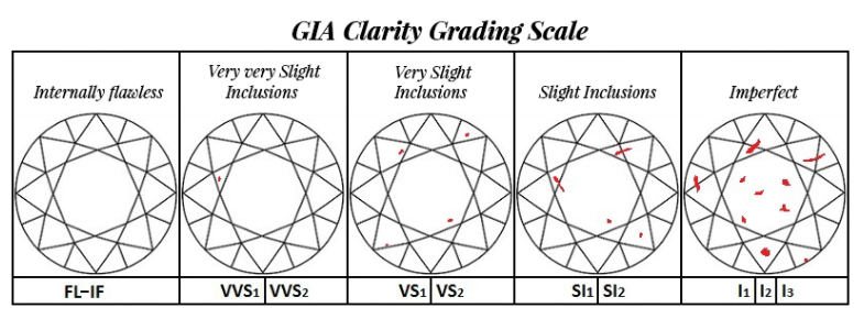 The highest clarity range is Flawless-VVS. This means the diamond is extremely clean under a microscope and any imperfections cannot be seen with the naked eye.