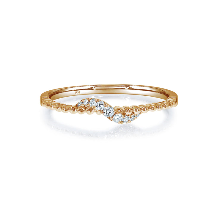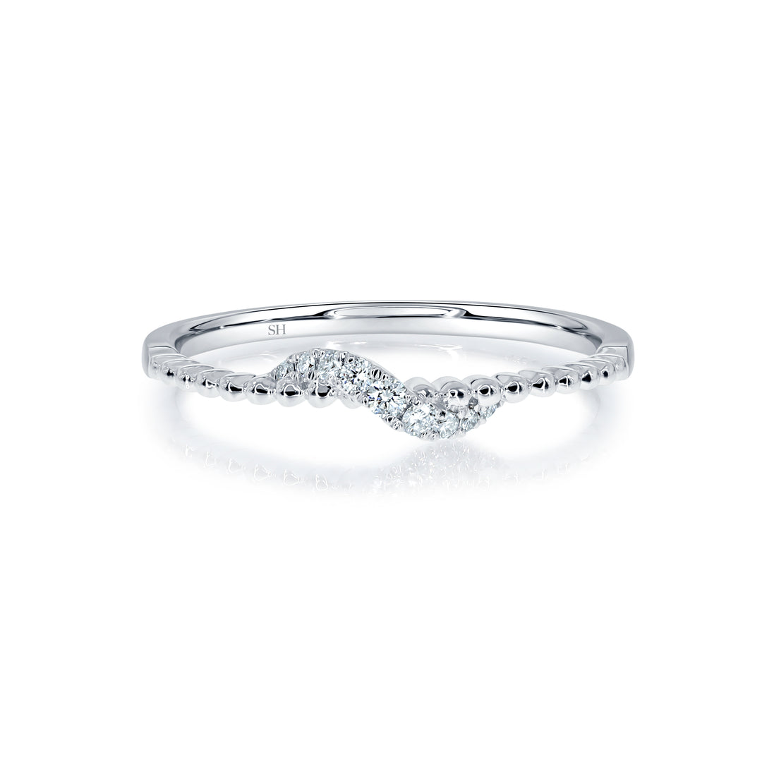 Women's Beaded Wedding Band with Pavé-Set Twist - W0825