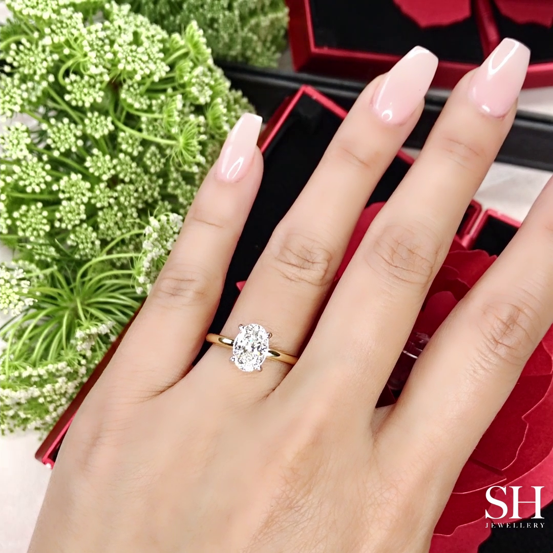 Our exclusive collection of Oval Cut engagement rings features over 30 designs only available from SH Jewellery Melbourne, showcasing diamonds 7-8 grades above average chain retailers. Oval Cut diamonds combine the brilliance of Round diamonds with an elongated shape to enhance sparkle and create the illusion of a larger stone. This optical effect makes Oval Cut engagement rings a best seller among astute Australian couples.