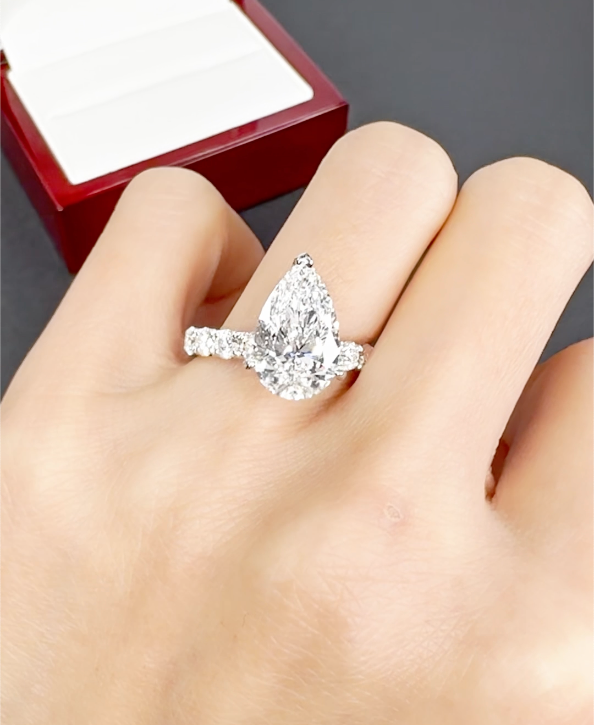 Pear diamond engagement rings offer a perfect blend of brilliance and sophistication, combining the sparkle of a round diamond with the elegance of a marquise and the timeless appeal of an oval. Their elongating shape enhances finger length and provides a sleek, flattering look. Compared to other cuts, Pear-Cut diamonds can create the illusion of a larger stone at a more affordable price, making them a practical yet stunning option for those seeking a standout design without compromising on beauty.