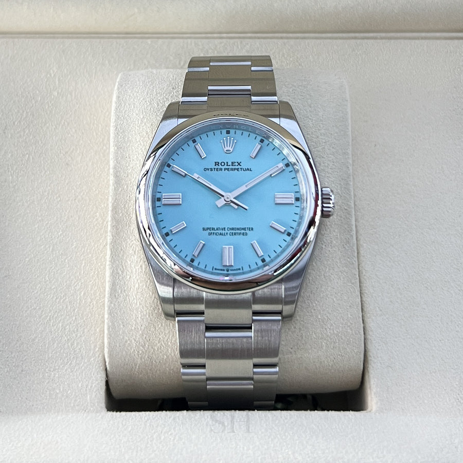 With dials in subtle and vibrant colours, the Rolex Oyster Perpetual is a statement of modernity. With classic universal appeal, this contemporary wristwatch is the ultimate marriage of function and form, demonstrating the pioneering origins of Rolex design.