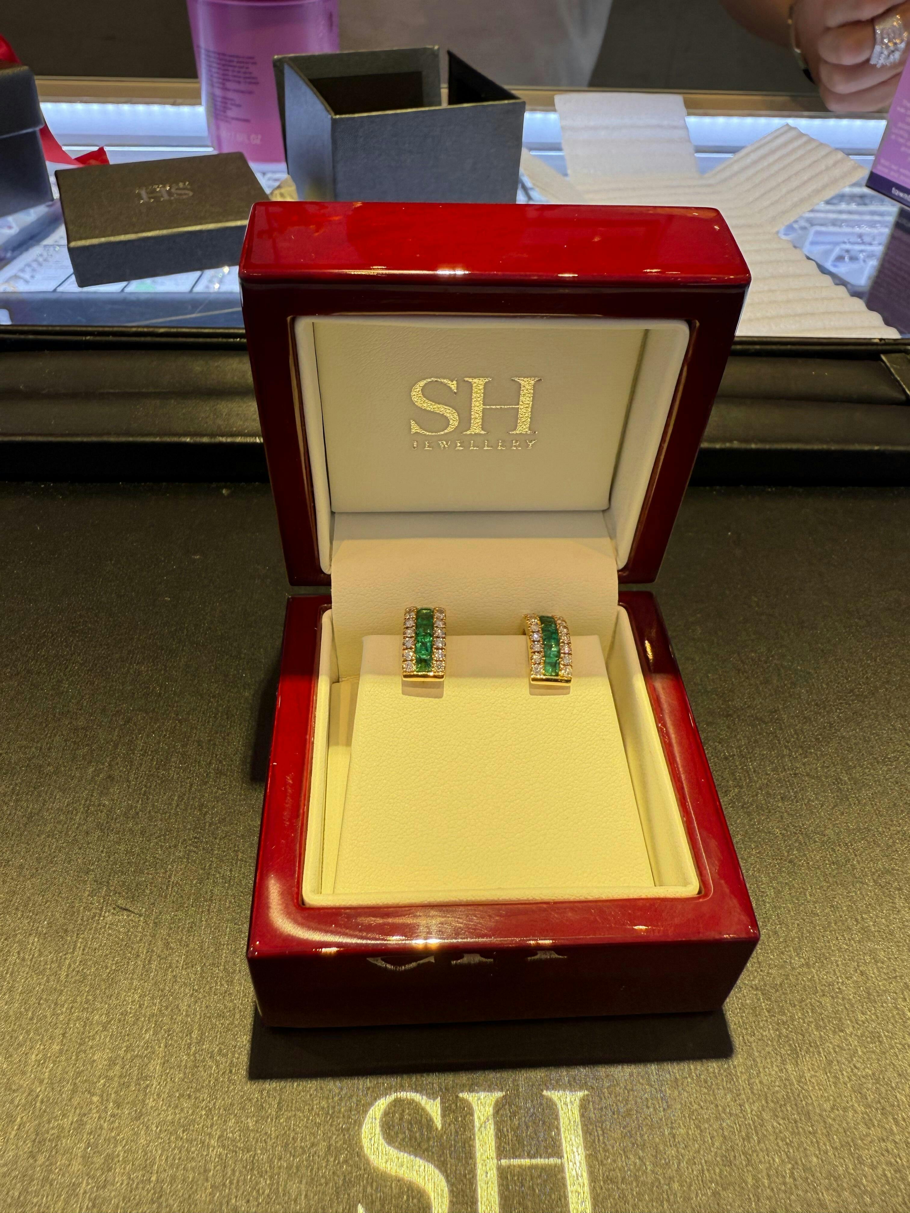 Thank you for the lovely feedback! It’s wonderful to hear how much you adore your earrings. The emerald really does have a way of standing out beautifully. If you need further assistance, please don't hesitate to let us know.
