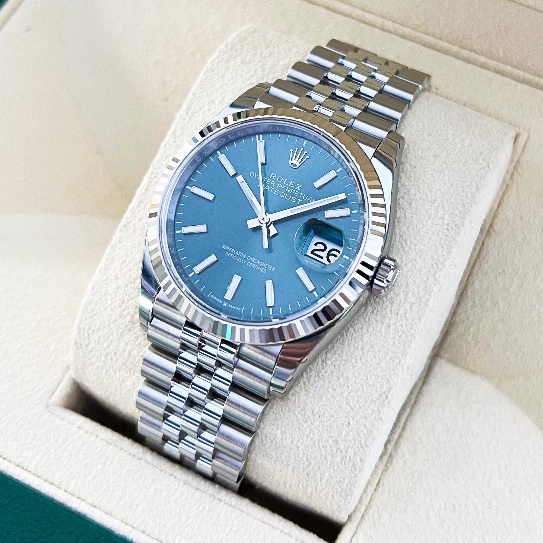 Rolex Datejust36 36mm Steel/WG Mint Green Dial Stick Markers 2025 Ref m126234-0051 (#1029)