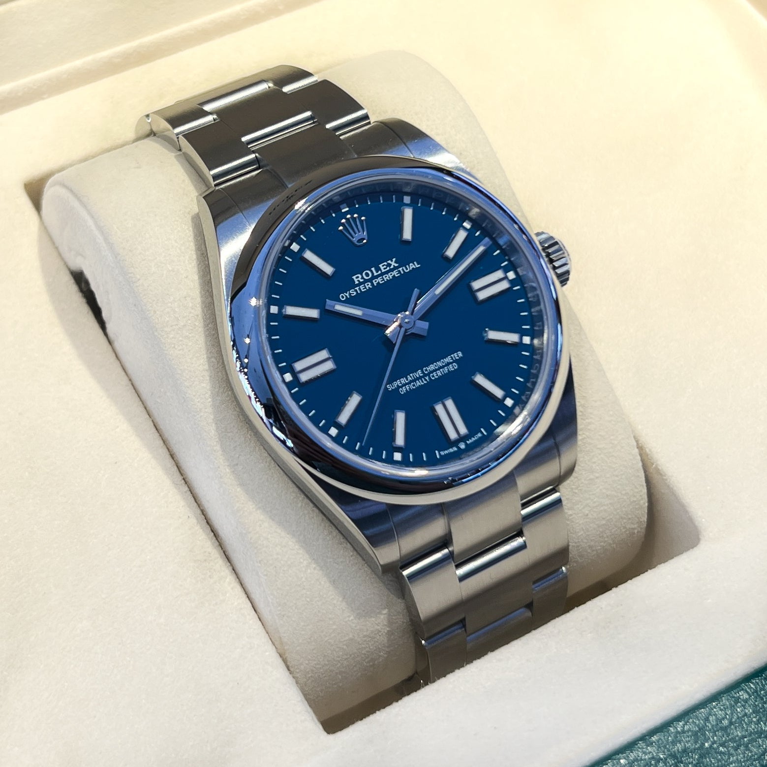 Rolex Oyster Perpetual41 41mm Steel Medium Blue Dial Stick Markers 2026 Ref m134300-0009 (#1066)