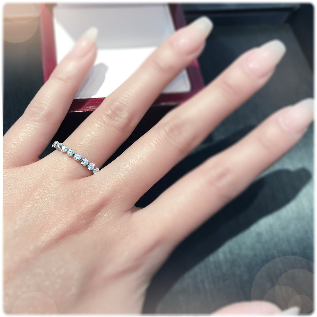 We bought a wedding ring with an unusual style. The diamonds are very clear and the white gold is very shiny. The staff were easy to talk to and made the whole thing a lot of fun!